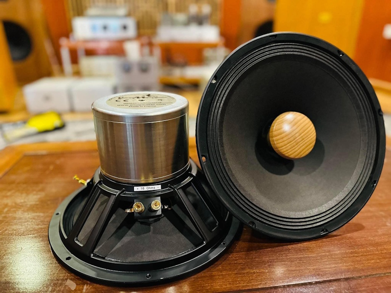 Mais revenons à l'existant, beaucoup d'audiophiles (dont moi) ont des systèmes audio assez proches, à savoir, un compresseur chargé par un pavillon et un gros haut-parleur du genre 38 cm chargé par une enceinte close, Bass-reflex ou autre, le tout filtré passivement ou électroniquement en analogique ou en numérique.