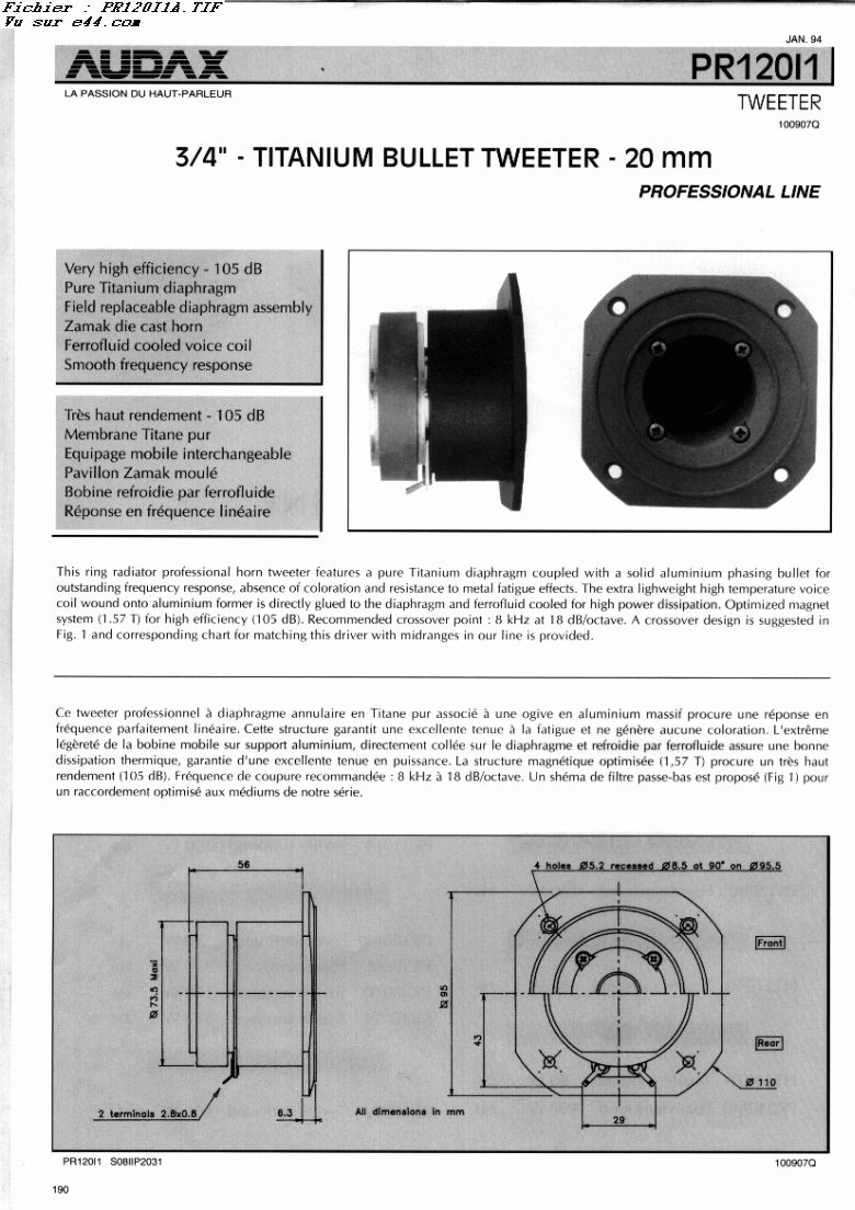 1 haut-parleur d'aigu à chambre de compression équipé d'une membrane en titane (Réf :